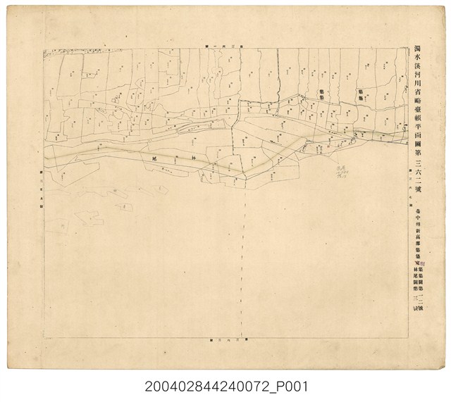 本圖為《濁水溪河川省略臺帳平面圖 》之一幅,比例尺二千五百分一,製作者臺灣總督府土木局水利課(或土木課水利股),準用河川省略臺帳平面圖之圖號為「濁水溪河川省略臺帳平面圖第三六二號」,依據地租規則之圖號為「臺中州新高郡集集街集集圖第一二號、林尾圖第三號」。