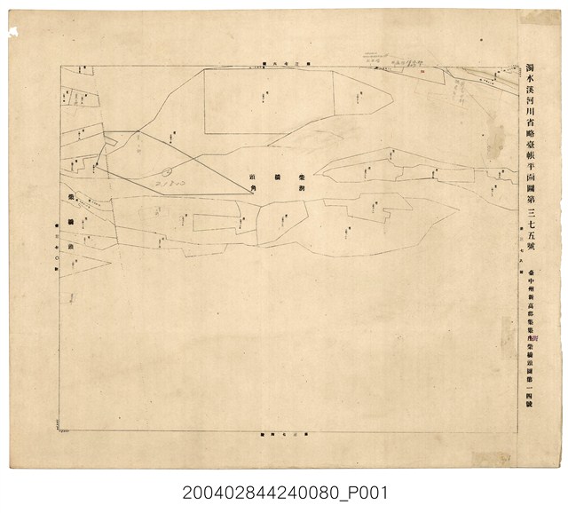 本圖為《濁水溪河川省略臺帳平面圖 》之一幅,比例尺二千五百分一,製作者臺灣總督府土木局水利課(或土木課水利股),準用河川省略臺帳平面圖之圖號為「濁水溪河川省略臺帳平面圖第三七五號」,依據地租規則之圖號為「臺中州新高郡集集街柴橋頭圖第一四號」。