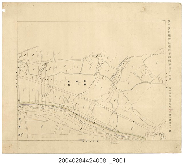 本圖為《濁水溪河川省略臺帳平面圖 》之一幅,比例尺二千五百分一,製作者臺灣總督府土木局水利課(或土木課水利股),準用河川省略臺帳平面圖之圖號為「濁水溪河川省略臺帳平面圖第三七六號」,依據地租規則之圖號為「臺中州新高郡集集街柴橋頭圖第一五號」。