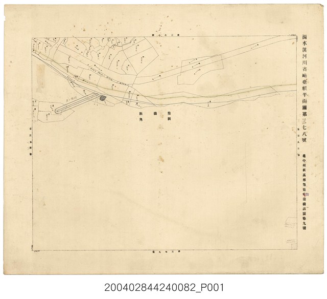 本圖為《濁水溪河川省略臺帳平面圖 》之一幅,比例尺二千五百分一,製作者臺灣總督府土木局水利課(或土木課水利股),準用河川省略臺帳平面圖之圖號為「濁水溪河川省略臺帳平面圖第三七八號」,依據地租規則之圖號為「臺中州新高郡集集街柴橋頭圖第九號」。