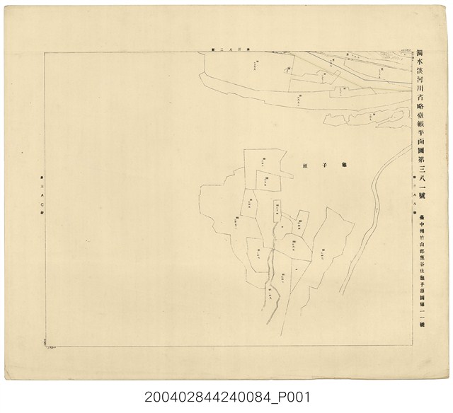 本圖為《濁水溪河川省略臺帳平面圖 》之一幅,比例尺二千五百分一,製作者臺灣總督府土木局水利課(或土木課水利股),準用河川省略臺帳平面圖之圖號為「濁水溪河川省略臺帳平面圖第三八一號」,依據地租規則之圖號為「臺中州竹山郡鹿谷庄龜子頭圖第一一號」。