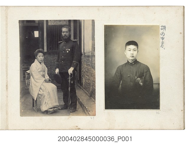 1.本物件為胡丙申獨照,為黑白照片,男子著西式文官制服,腋下夾置1頂帽子。黏貼照片的寫真帖右方寫有「胡丙申君」字樣。本文物紙質泛黃。
