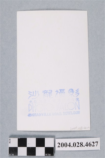 1.華語明星不詳黑白半身照片,直式單面,背景為線條狀,女星一頭短髮身穿圓點白色上衣,黑色圓珠項鍊,右手小指摸著耳後,側身臉部面對前方露齒微笑,看起來親切大方,正面版面乾淨,下方則有一小留白版面,狀況尚可,照片背面全白,唯有拍攝地點藍色蓋印於下方版面「沙龍攝影,九龍加連威大到四十九號」,整體狀況良好。2.照片推測為女明星,其餘相關資訊不詳。