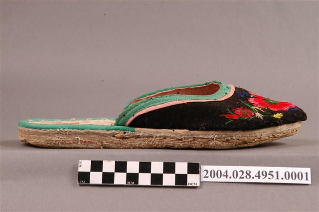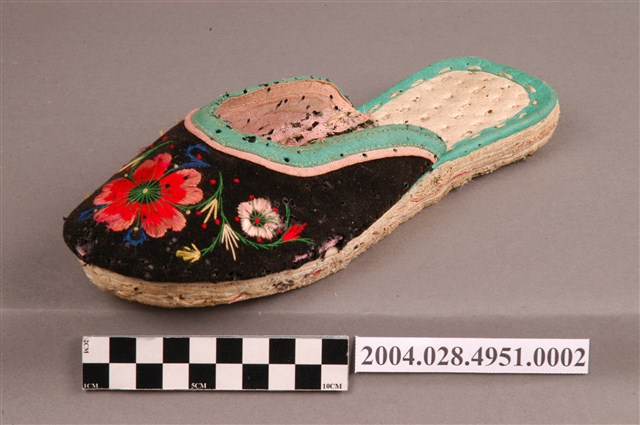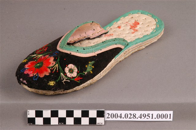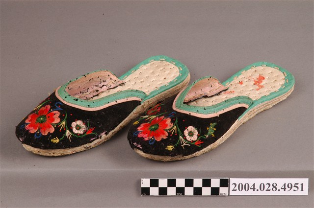 2004.028.4951 黑絨布客家刺繡拖鞋
