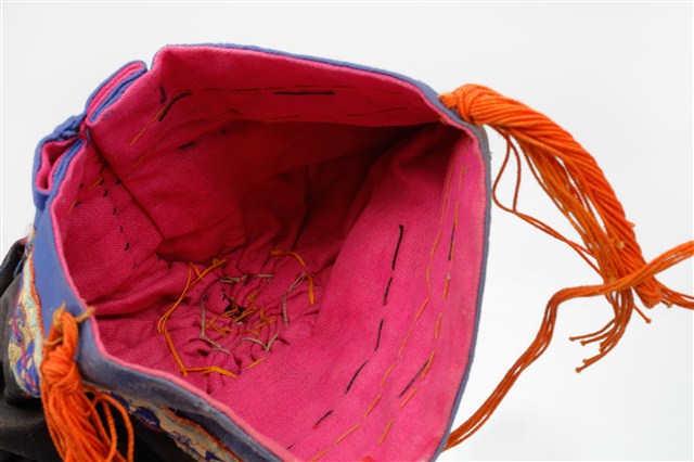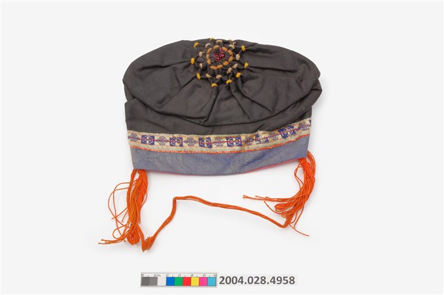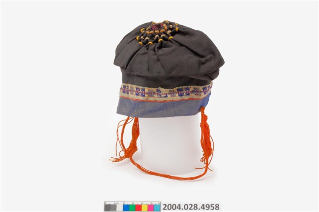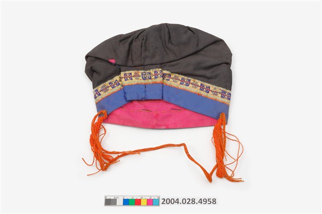 2004.028.4958 黑地彩色織帶緄邊碗帽