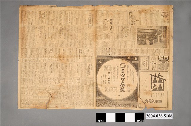 此為1931年(昭和6年)10月8日《臺灣日日新報》第3至6版,內容計有〈日月潭電力消化問題 空中窒素固定工業(三) 食糧の自給と國防問題 國際貸借の改善と關係がある〉、〈運送合同の內容 社名は臺灣合同運送會社本月二十日頃創立總會開催〉、〈運送分離と新岸壁倉庫の管理 正式指令は新會社創立後〉、〈今朝灣糖運賃と加盟船會社の申合 辰馬と大連汽船の割込を阻止し運賃は据置方針〉、〈世界的より地方的になつた倫敦銀塊相場紐育の相場が真の標準〉、〈東京の傑商:改良に熱心の餘りボイコツトされた話 我が化粧品界の恩人〉、〈北海道へ蓬萊米の大移出 基隆在庫の激減〉、〈南支の排日と商船 廣東線の杭州丸を臺灣線へ編入〉、〈海山郡の競作會九日授官式〉、〈貨物集配料金緩和〉、〈水產打合會終る 漁業移民の招致其他出席者の照南丸見學〉、〈更生の城南信用〉、〈上海フスマの輸入杜絕〉、〈陽炎〉(川路柳虹)、〈山百合の花を積んだ船〉(奧平祥一)、〈中部飛行場設置の噂に氣の早い人々目星しい候補地に血眼〉、〈八十五萬圓を投じた宜蘭平野排水工事 排水尚は不充分のため二次計畫を要望する〉、〈十二萬餘圓の豫算 新埤圳計畫〉、〈高雄水道擴張工事進捗〉、〈臺北から角力遠征〉、〈遊覽地として絕勝の日月潭總督巡視に同行して〉、〈歲入減見込で難澁の臺南州豫算〉、〈嘉義市役所の移轉問題〉、〈臺中大隊の除隊兵〉、〈明治溫泉は郡經營に移る〉、〈臺中州の興農倡和會〉、〈霧社事件一周忌〉、〈臺灣藥學會總會十七日花蓮港に開く〉、〈能高神社の祭典に大馬力の埔里〉、〈閱覽者は殖えるが內容貧弱な高雄圖書館〉、〈宜蘭農林の運動會〉、〈員林柑橘組合が青果聯合會から脫退〉、〈東亞の謎〉(國枝史郎)、〈短歌藝術の將來 真の隆盛はこれから〉(若山喜志子)、〈最近の大百貨店 臺北に進出する可能性の問題〉(白木屋取締役 西野惠之助氏談)、〈臺灣漫感〉(上村南海)、〈ハネエムウン‧カクテル〉(安藤廣)。 此物件代表的《臺灣日日新報》為臺灣日治時期創辦,並偏向日本官方立場的報紙,也被稱為總督府的「御用報紙」。《臺灣日日新報》並非日治時期最早創辦的報紙,是由1896創辦的《臺灣新報》以及1897年創辦的《臺灣日報》合併而成。其後《臺灣日日新報》與《臺南新報》、《臺灣新聞》共三報被合稱「臺灣三大御用新聞」,同時也是臺灣當時最大的報社,最終在日治末期的1944年將臺北《臺灣日日新報》、《興南新聞》、臺中《臺灣新聞》、臺南《臺灣日報》、高雄《高雄新報》、花蓮《東臺灣新報》五大報合併為《臺灣新報》,而在戰後《臺灣新報》被國民政府接收改為《臺灣新生報》。(何義麟,2015:26-27) 日治時期的臺灣報紙,就發行機構的性質可分為官、民兩類。在官方方面,有總督府發行的《府報》,以及各州、縣、市、庄等地方政府發行的地方報,如:《臺北州報》。民間方面則有言論親近官方的《臺灣日日新報》、《臺灣新聞》、《臺南新報》,而貼近民眾立場的報紙則以《臺灣民報》為代表。由於總督府嚴格的出版限制,使得報刊出版門檻甚高,得以籌辦刊物者通常為財團、大型組織或具備豐厚資產者。