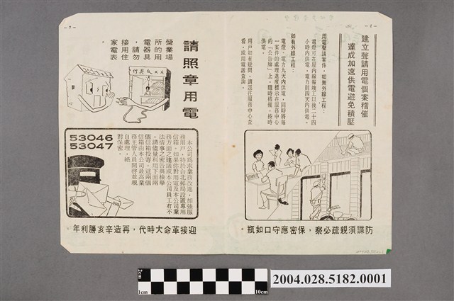 本物件為「臺灣電力公司用戶通訊」第67期之一,內容為提醒用戶颱風季節到了須小心用電、建立聲請用電個案稽催等,底下有各管理處服務電話。