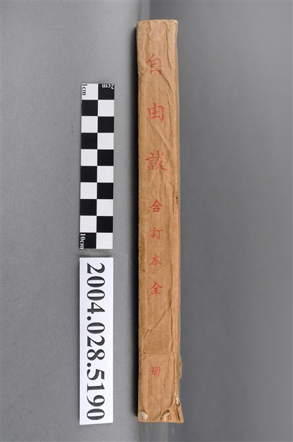 此件為《自由談》雜誌的合訂本,內容刊載《自由談》雜誌1972年(民國61年)發行的第23卷的所有期數,以紅色字體書寫封面。 此物件為《自由談》雜誌,創辦於1950年。此《自由談》主要內容在該刊物創辦時的卷頭語明言:「本誌不談政治,以山水、人物、思想為中心課題」,描述人物眾多,如:政治家、軍事家、文人、藝人等,人物繁多,而山水部份早期為中國風景,後逐漸轉為臺灣本土景色。另外本雜誌的一大特色,《自由談》為戰後早期就刊載大量商業廣告的雜誌,展現當時代的流行產業以及美術風格。 在戰後初期,出版法規的鬆綁促使臺灣的雜誌大量創辦,然而1946年行政長官公署下令禁止使用日文,使雜誌受到語文限制的打擊,更於1947年發生二二八事件,大量的雜誌遭到查禁,其後僅有官方雜誌以及受到官方贊助的雜誌得以存活,物價的飆漲更進一步限制雜誌的生存。在1949年戒嚴之後,言論自由受到限制,民間雜誌更受到影響,知識分子僅能從文藝、人文思想方面尋找出口,形成1950至1960年代文藝雜誌大量出現的狀況。