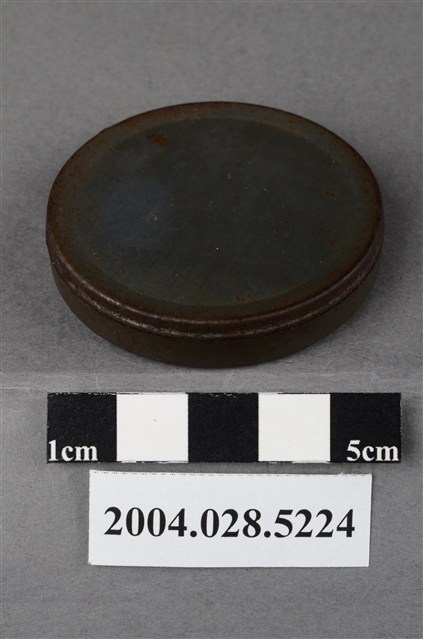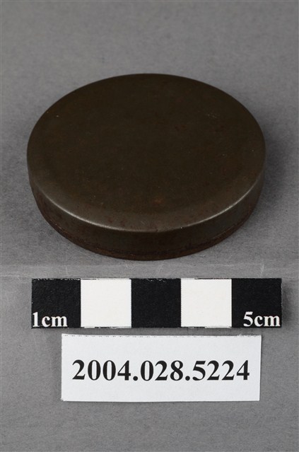 本物件為黑色無字樣藥盒。藥盒為鐵製品,無字無圖樣於外觀。