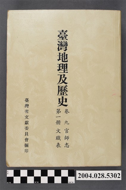 2004.028.5302 潘敬尉主編《臺灣地理及歷史》卷九官師志第一冊文職表
