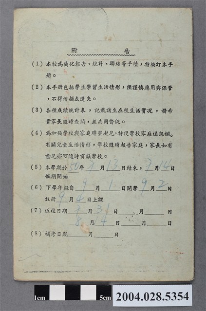 2004.028.5354 省立台北女子師範附屬小學一年級蔡舜君兒童手冊
