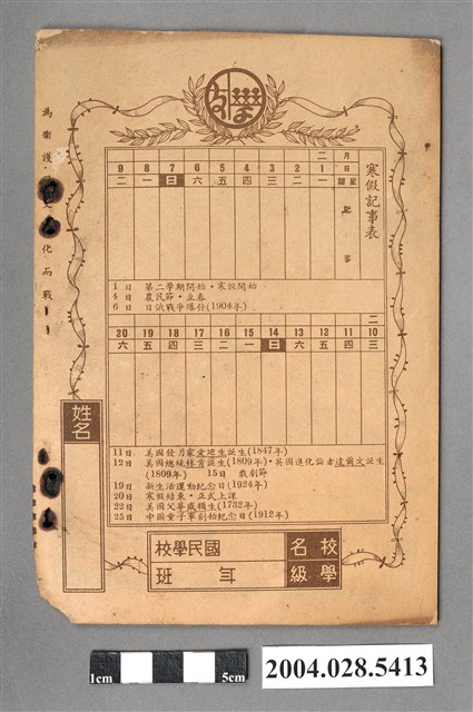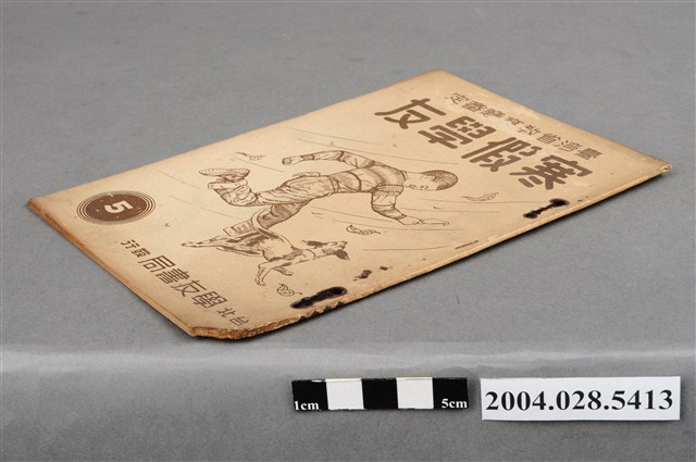 本文物為書籍,乃臺灣省教育廳審定通過的寒假作業簿:《寒假學友》第五冊,由台北學友書局編輯部編輯發行,背頁有寒假(二月份)記事表,以及校名、學級、姓名欄位。顯示當時統一教材統一作業的教育政策。