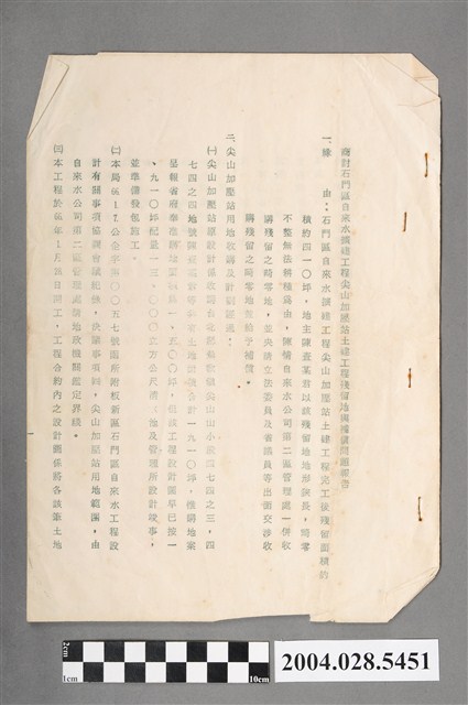 2004.028.5451 商討石門區自來水擴建工程尖山加壓站土建工程殘留地與補償問題報告