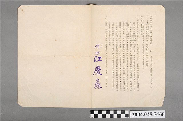 2004.028.5460 施有枝等受文臺灣省自來水公司第二區管理處土地使用函
