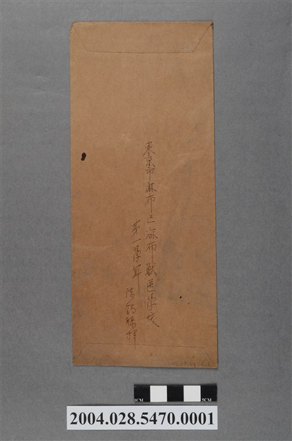 本件為陳錫祿到東京獸醫寫信給其兄陳錫嘏的家書,信封上寫台灣台北州海山郡鶯歌庄鶯歌163番地,信封背面寫東京市麻布區麻布獸醫學校第一學年陳錫祿押。