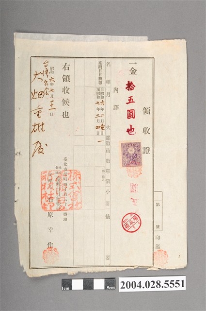2004.028.5551 昭和6年株式會社臺灣日日新報社給大畑重雄收據