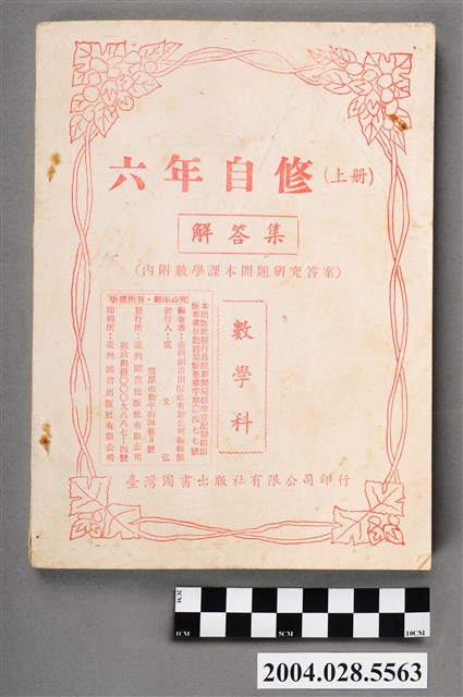 2004.028.5563 臺灣圖書出版社有限公司編輯部編《六年自修解答集》上冊