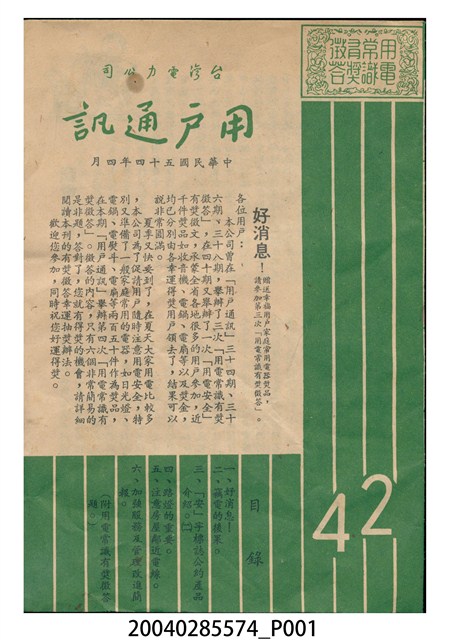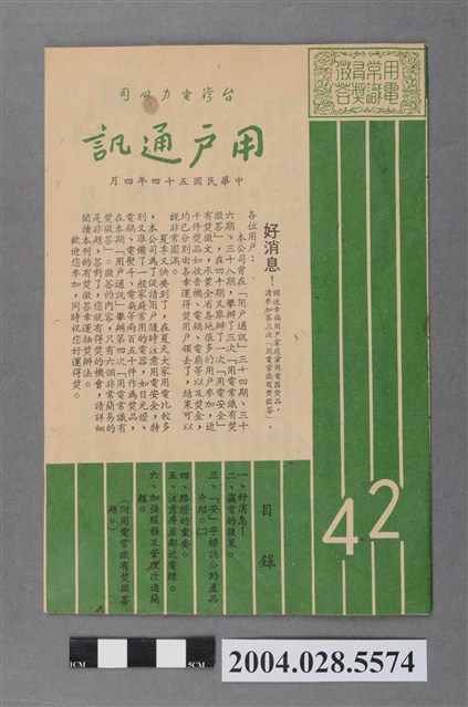 2004.028.5574 臺灣電力公司出版《臺灣電力公司用戶通訊》第42期