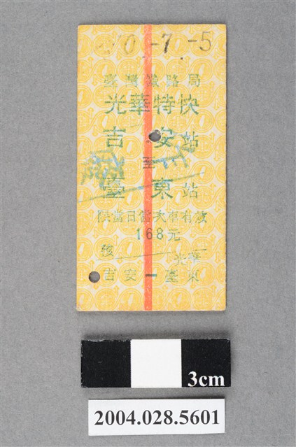 2004.028.5601 臺灣鐵路局光華特快車吉安至臺東站車票