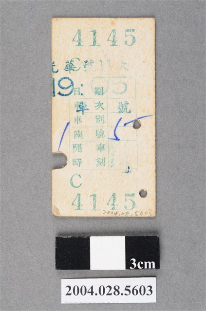 2004.028.5603 臺灣鐵路局光華特快車花蓮至臺東站車票