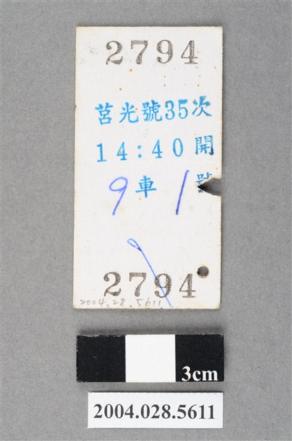 2004.028.5611 臺灣鐵路局莒光號苑裡至嘉義站車票