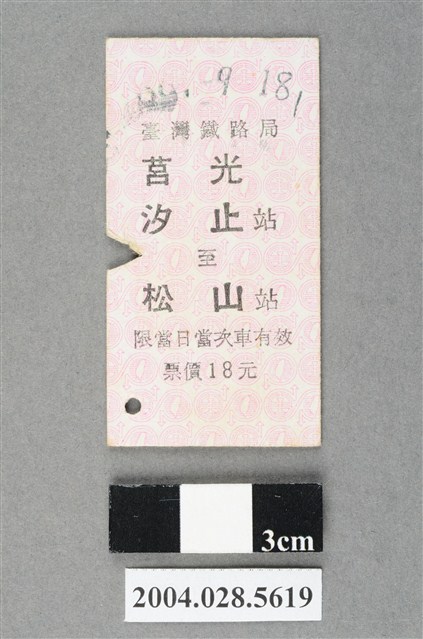 2004.028.5619 臺灣鐵路局莒光號汐止至松山站車票