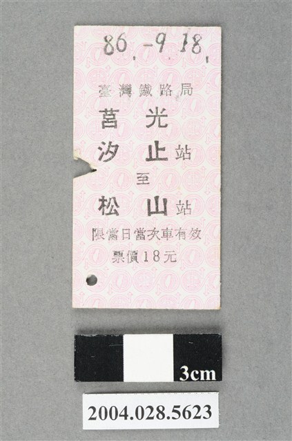 2004.028.5623 臺灣鐵路局莒光號汐止至松山站車票