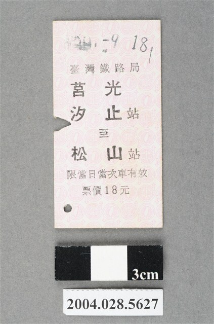 2004.028.5627 臺灣鐵路局莒光號汐止至松山站車票