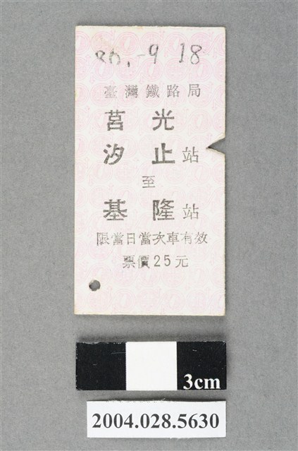 2004.028.5630 臺灣鐵路局莒光號汐止至基隆站車票