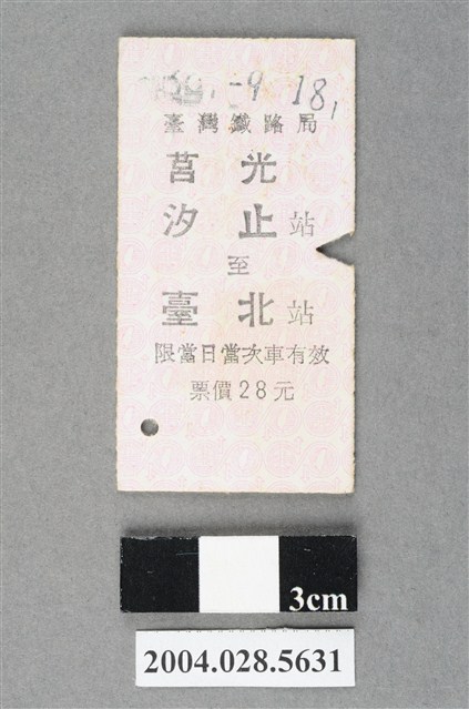 2004.028.5631 臺灣鐵路局莒光號汐止至臺北站車票