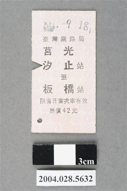 2004.028.5632 臺灣鐵路局莒光號汐止至板橋站車票