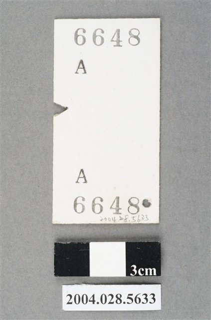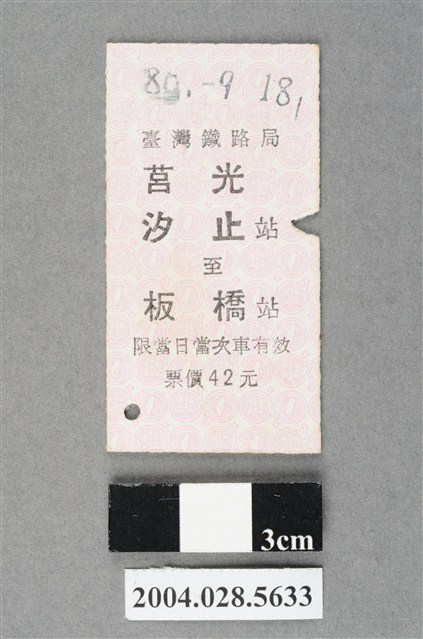 2004.028.5633 臺灣鐵路局莒光號汐止至板橋站車票