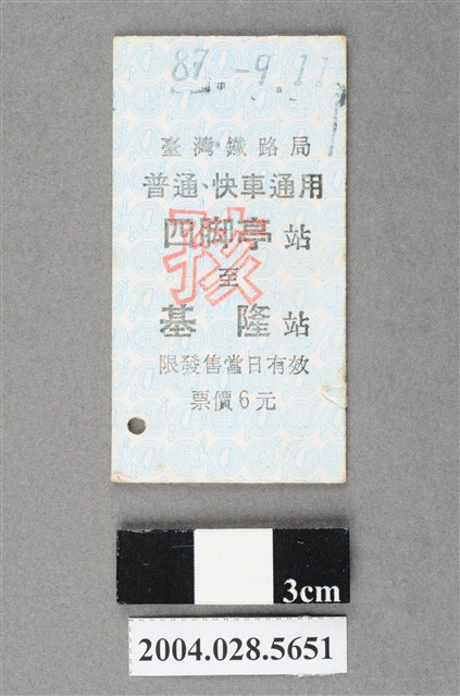 2004.028.5651 臺灣鐵路局普通及快車通用四脚亭至基隆站孩童票
