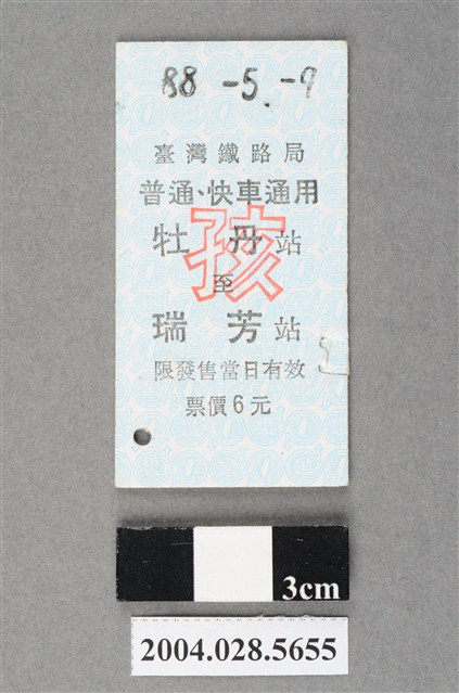2004.028.5655 臺灣鐵路局普通及快車通用牡丹至瑞芳站孩童票