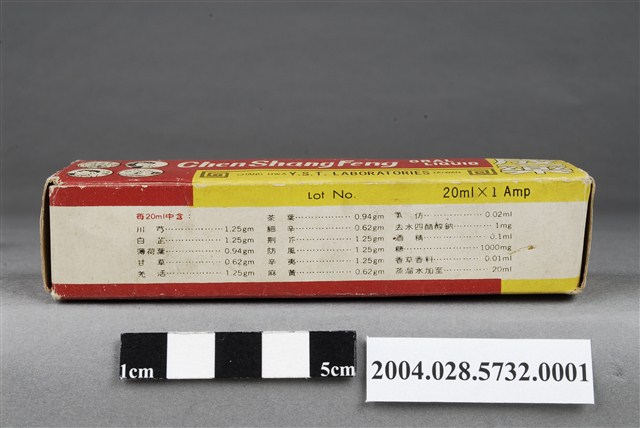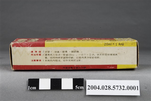 2. 本產品標有內衛成製字第3124號,應為西元1949-1971年許可字號發證的產物,但在衛生福利部食品藥物管理署查無此藥資料。