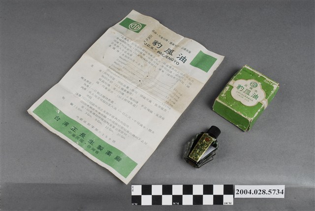 2. 本產品標有內衛成製字第0159號,應為西元1949-1971年許可字號發證的產物,但在衛生福利部食品藥物管理署查無此字號資料。有另一衛署成製字第003204號之豹風油,為同家製藥廠申請,應是重新申請註冊的藥品,該許可字號發證日期為西元1978年5月8日。