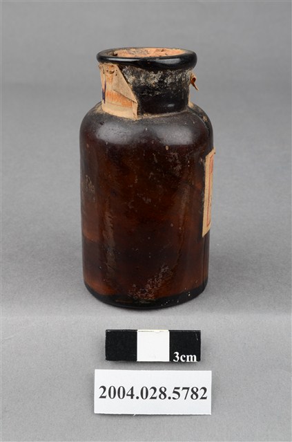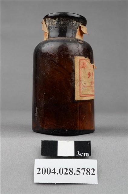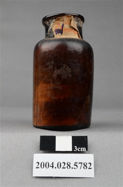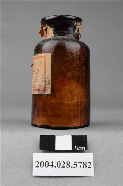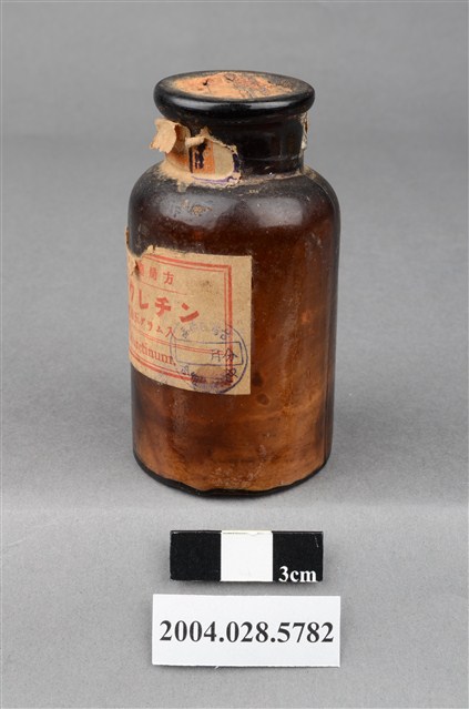 本物件為日本藥局方ヂウレチン,降血壓藥的一種。藥瓶為茶色,瓶塞似木質材質。瓶身上貼有標籤,印有日本藥局方、ヂウレチン、□拾五グラム入和Diuretinum字樣。瓶頸有破損的封條。
