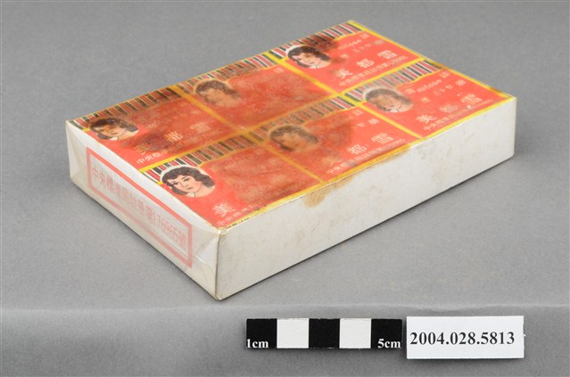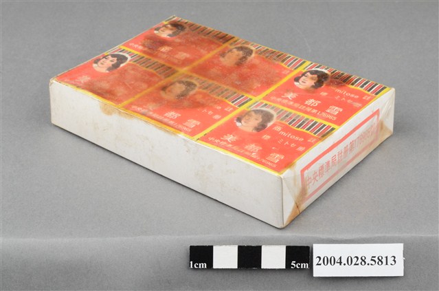本件美都雪白粉半打裝以灰白色紙張拗折黏貼成無蓋長方形扁盒狀,為長14.2公分,寬9.6公分,高2.7公分,兩側短邊側面印有紅色字框為中央標準局註冊第176965號,盒內裝盛美都雪白粉6盒,外層以透明塑膠膜包裝。美都雪白粉正面印刷黃色底,上部以黑、紫、白3色直線條交替排列,交界處呈裂紋,左上方作橢圓開光,內印美女頭像,下段以紅色為底,上印白字「註冊商標」,橫書「mitose」、「ミトセ」,下端橫書「美都雪」。美都雪為臺灣製作工廠,主要生產香粉與白鞋粉,香粉為傳統婦女之化妝品,也用於挽面;白鞋粉則為布鞋專用之遮蓋汙漬使用,2類產品其製作原料相似,僅於研磨細緻度不同。
