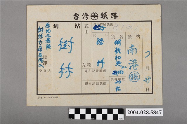 2004.028.5847 臺灣鐵路南港至樹林貨車票