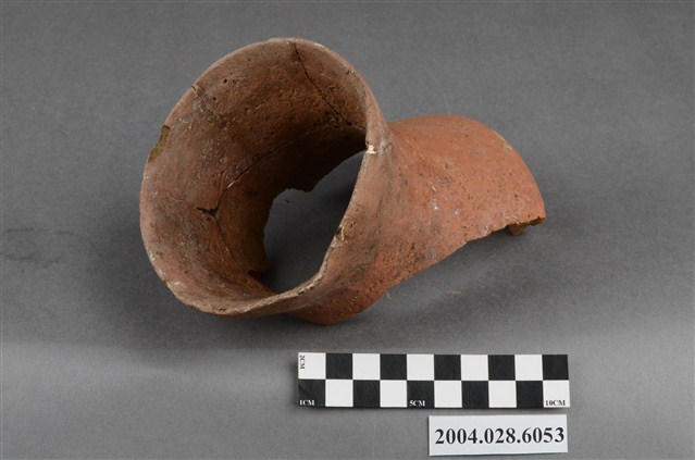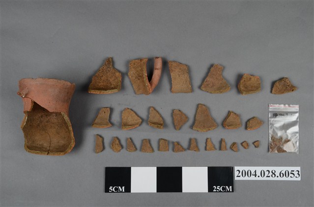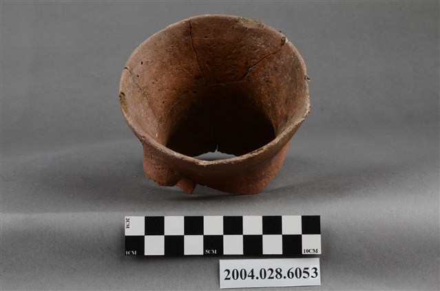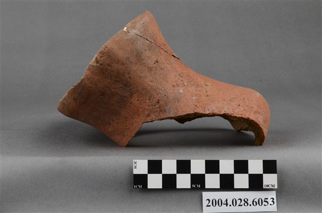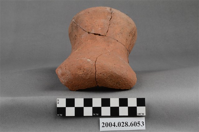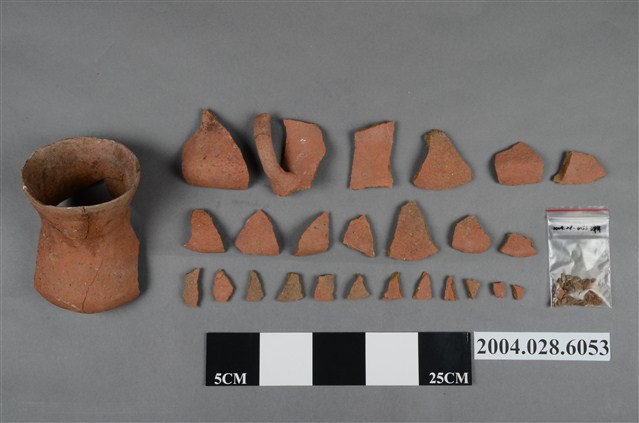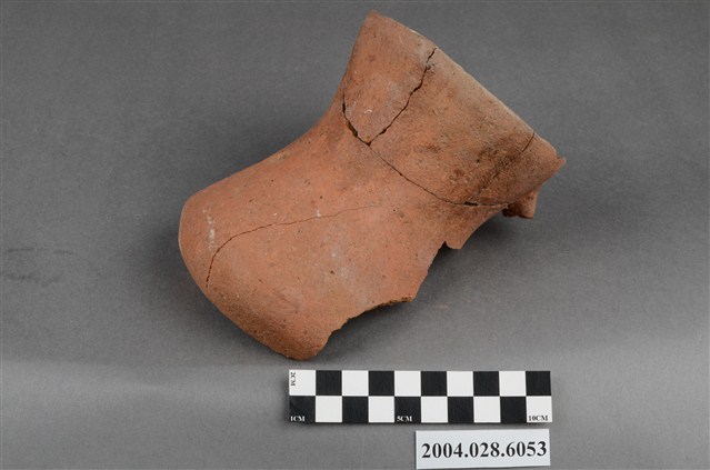 1.本件為臺東長光遺址採集之單把陶罐,型制為凹底圓腹,口緣完整但器腹殘破尚未黏合,器高10.1cm、腹徑14.7cm、口徑11.7cm,質地為夾砂紅陶,陶土中夾雜砂粒,燒製前將表面抹平,質地細緻,內胎燒透呈紅色,陶罐口緣甚薄,帶流,在口緣表面帶有把手,但為單把且已經斷裂。2.陶容器在臺灣的史前遺址出土數量相當多,尤其以陶罐最為常見,為史前人類日常盛水或燒煮食物的容器,但也被當做一種陪葬品使用。