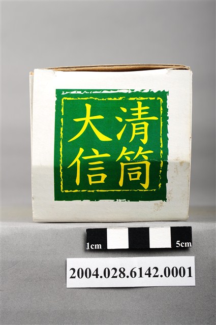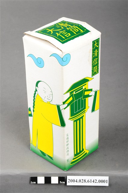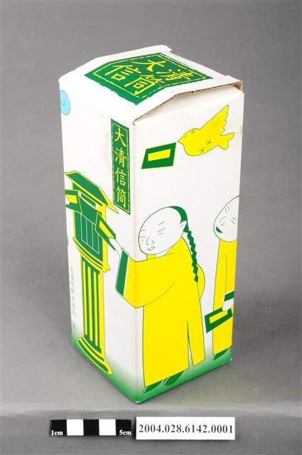 本物件為大清信筒外盒,外盒底色為白色,盒上有郵筒的插圖,左下角印著「交通部郵政總局」,盒蓋上印著「大清信筒」,底部印著郵局的符號及2002。