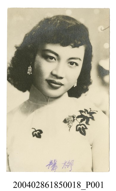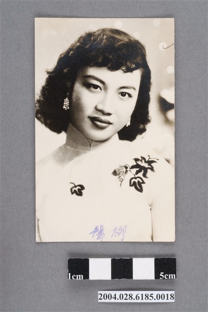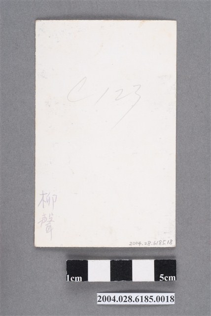 1. 柳聲明星黑白沙龍照。相紙材質頭像照。柳聲身穿淺色旗袍,胸肩處有繡花,戴珠墜耳環,頭略向左側看著鏡頭。照片下方有藍色筆寫「柳聲」,背面也有藍筆寫「柳聲」,鉛筆寫「C123」字樣。照片右上角有筆畫線條,表面也些許白點。2. 柳聲曾參與邵氏電影拍攝。1954年曾參加「港台影劇兩界聯合會」。1959年曾隨「江山美人:亞洲影展團」(同行有張仲文、樂蒂、林鳳等女星)赴新加坡、吉隆坡等東南亞地區宣傳遊行。曾演出台影公司的《孽海情花》(1959;港名《慾海情花》),其餘資料不詳。