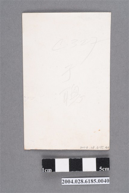1. 于聰明星黑白沙龍照。相紙材質頭像照。于聰在黑色背景前穿穿西裝打黑色領帶,面對鏡頭微笑。背面有鉛筆寫「于聰」與「C327」字樣。照片狀況良好。2. 于聰為香港導演、演員。為影星夏厚蘭的丈夫,曾主演《鑽石花》(1953),導演與主演《熱情》(1956)。其他相關資料不詳。