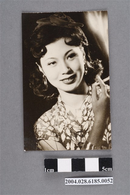 1. 于素秋明星沙龍照。相紙材質黑色背景頭像照。于素秋微笑,及肩捲髮,紮花形狀髮圈。脖子上戴著方形綴飾的項鍊,耳戴圓環狀耳環,著短袖花襯衫看向左前方。右手持煙舉在下巴前。照片左下角有「于素秋」三個字簽名。背面有鉛筆寫「于素秋」與「C235」字樣。照片狀況良好。有些許白色小點。2. 于素秋原名于鳳是1950、1960年代香港影星。父親是著名京劇名武生于占元,1948年開始從影,曾主演超過200部影片,其中170多部是武俠片,包括粤語武俠片經典影片《如來神掌》。