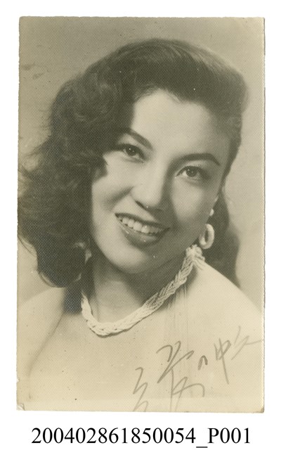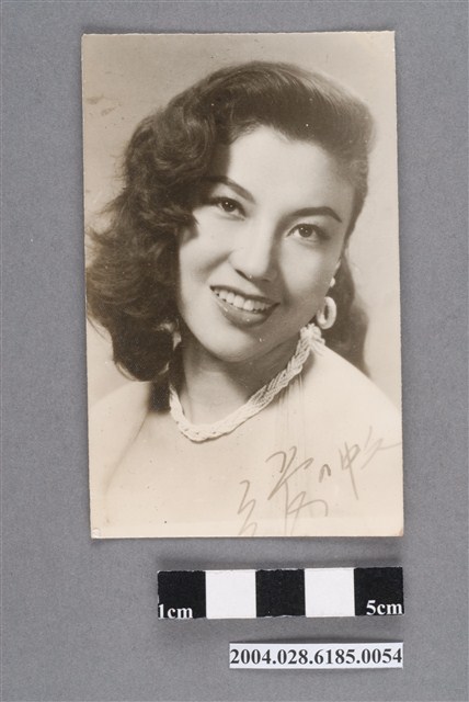 1. 張仲文明星黑白沙龍照。相紙材質頭像照。張仲文頭髮披肩,微笑的臉略朝左傾。著露肩上衣,脖子上戴細珠鍊編織而成的項鍊,耳戴金屬環狀耳環。照片右下角有「張仲文」簽名。背面有鉛筆寫「C293」字樣。照片上方有污髒,中間處有些許白點,下方有一些黑點。2. 張仲文為臺灣中影演員訓練班畢業後簽約為該公司的第一批基本演員,是國語片性感女星,有「最美麗的動物」之稱。在《 噴火女郎》中性感的形象廣受報導,被稱為「 肉彈」、「 噴火女郎」等暱稱。
