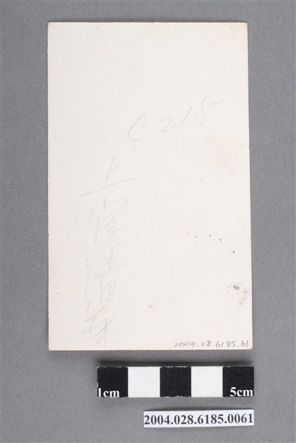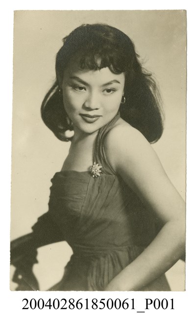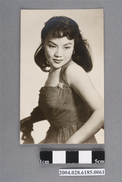 1. 上官清華明星黑白沙龍照。相紙材質半身照。上官清華身穿皺摺設計的深色露肩洋裝,左臂窩處有鑲鑽胸針。上官清華側身向右,臉向正前方低頭。頭髮過肩,戴著環狀耳環。背面有鉛筆寫「上官清華」與「C215」字樣。照片狀況良好,表面有些許細小白點。2. 上官清華本名嚴淑芸,為藝華公司創辦人嚴春華的幼女。曾自創清華影業公司拍攝自己主演的《新漁光曲》(1955)。影片為上映即因感情與財務問題服藥自殺,幸獲救。