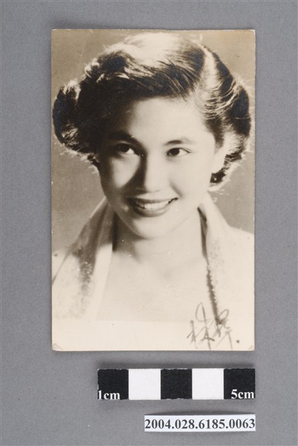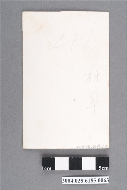 1. 林翠明星黑白沙龍照。相紙材質頭像照。林翠短髮微笑看向右前方。身穿開領上衣,領子上有碎片裝飾。照片下方有一條空白相紙,右下角有「林翠」兩字簽名。背面有鉛筆寫「林翠」與「C71」字樣。照片表演有些許細刮痕與髒點。2. 林翠本名曾懿貞,香港電影紅星,曾演出《女兒心》等數十部影片,被香港影壇譽為「學生情人」、「NO小姐」。第二任丈夫為王羽,1989年至1995年間參與華視及中視《不了情》等五部連續劇演出。