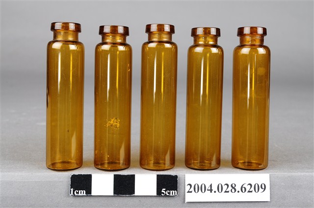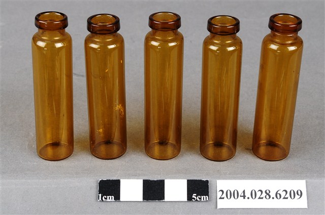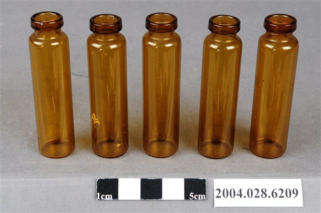 本物件為玻璃空瓶。共有五個物品,皆為圓柱型瓶體。