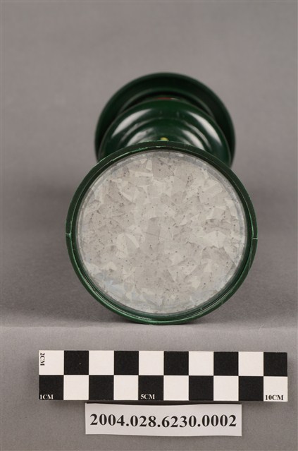 本物件為郵政博物館出品大清郵政信筒撲滿,盒內的郵筒模型為深綠色,桶身上有金色直線條紋裝飾,郵筒上印著大清郵政。