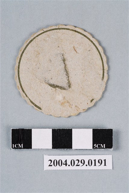 1.本物件為海王子尪仔標,為圓形花邊紙質卡牌,正面海王子的臉已損毀,中央圖案為動畫海王子內主角海王子與海豚三兄弟之一菲兒(另有譯芬),海王子為紅短髮,身穿橘衣,披有紅色披風,海豚三兄弟之一菲兒,身體為藍綠色,頭戴有1塊貝殼,場景於海底,正面左上有「海王子」藍色字樣,正面上右下左各分別有「撲克牌-梅花」、「鷄」、「炮」、「猜拳-剪刀」圖案與字樣,「鷄」為藍字,「炮」為紅字;背面外圍有黑色圓環蓋印,背面右下與中央已損毀。
